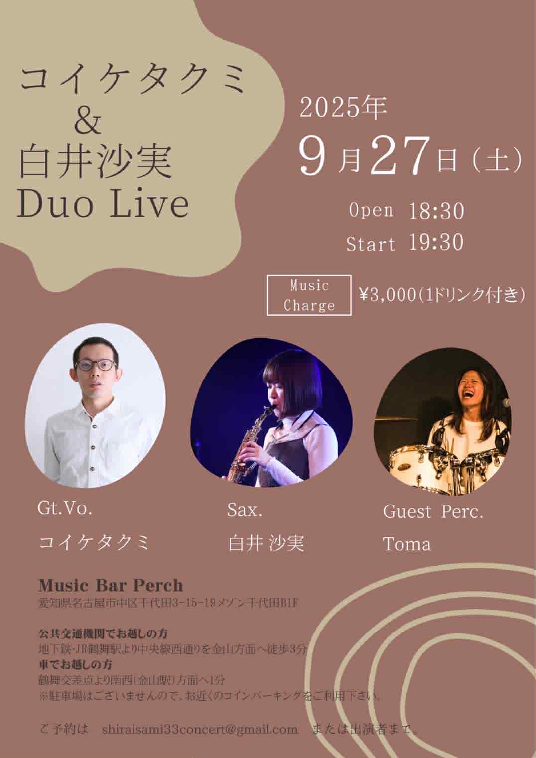 前売り¥2,500(+1Drink) 当日¥2,800(+1Drink)