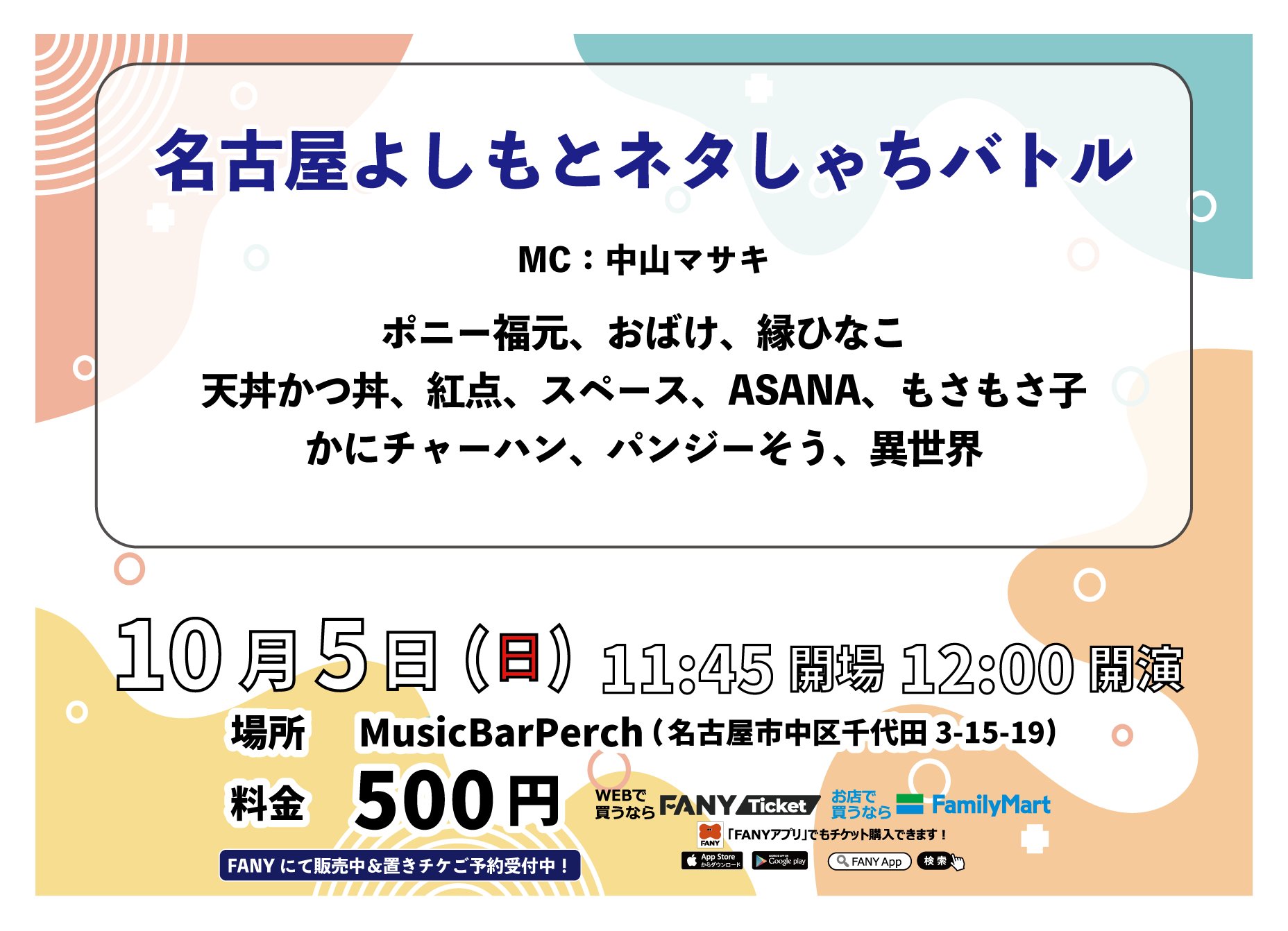 【出演】おばけヒラモト、アンダーポイント本美、中山マサキ、縁ひなこ、紅点、刻めダカタ桑田、スペースますっち、ASANAナミト、3万パワーズひとしザ・ワールド